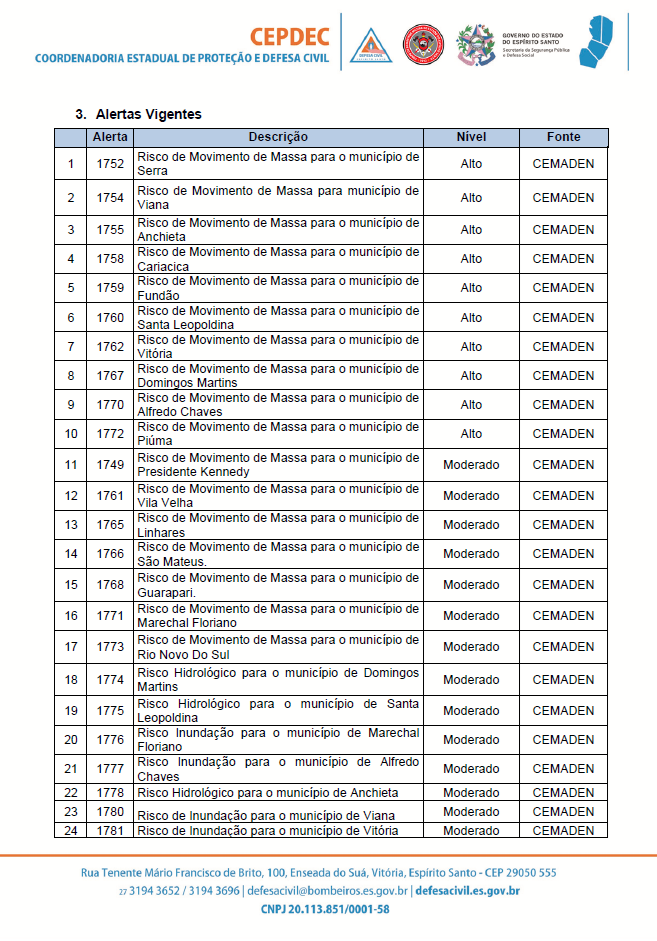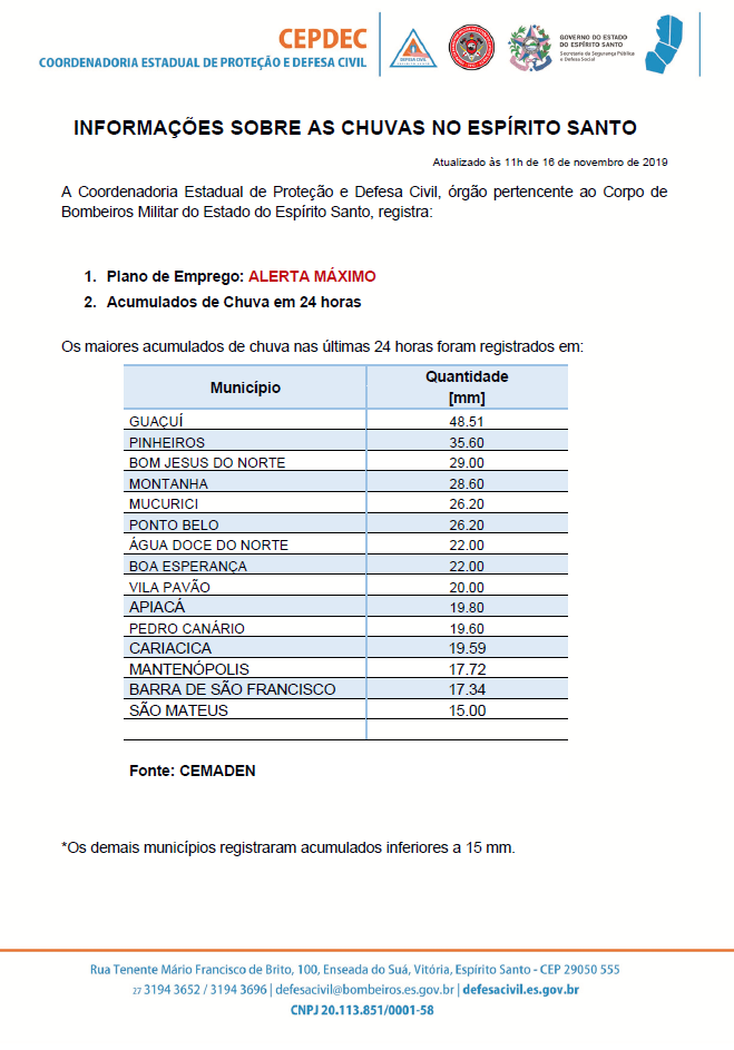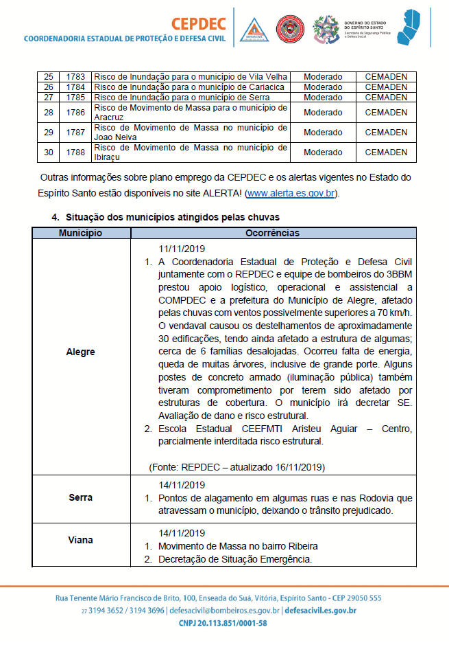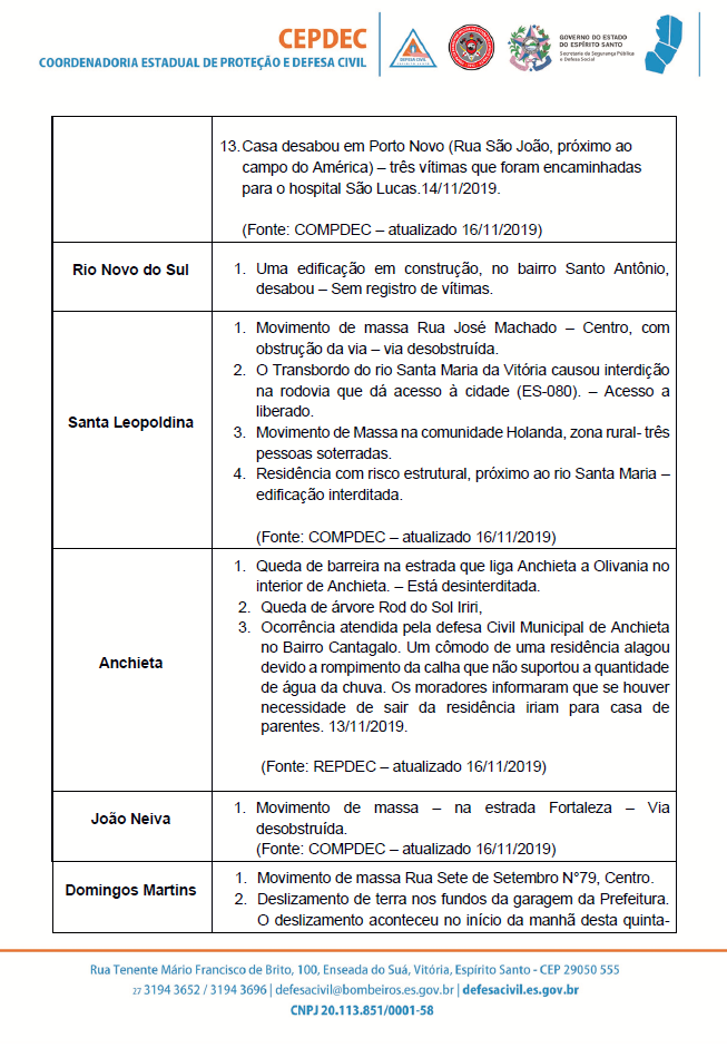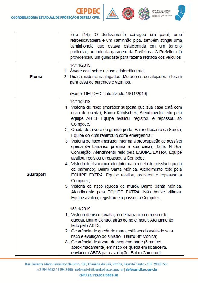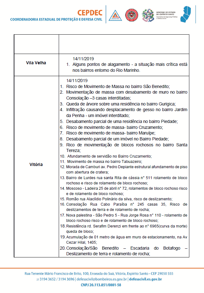 ATUALIZAÇÃO #ChuvasNoES 🌧
