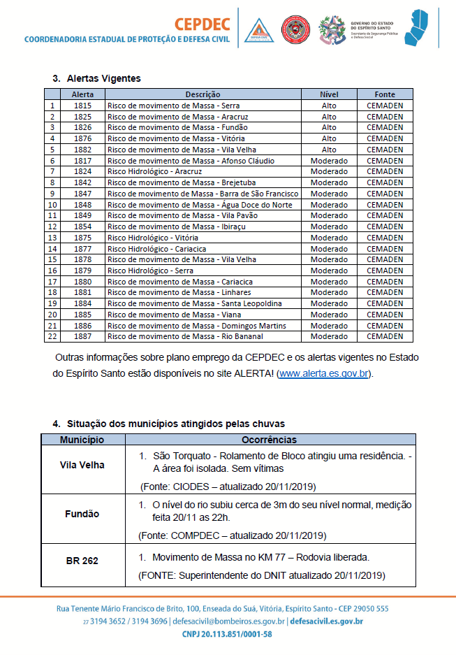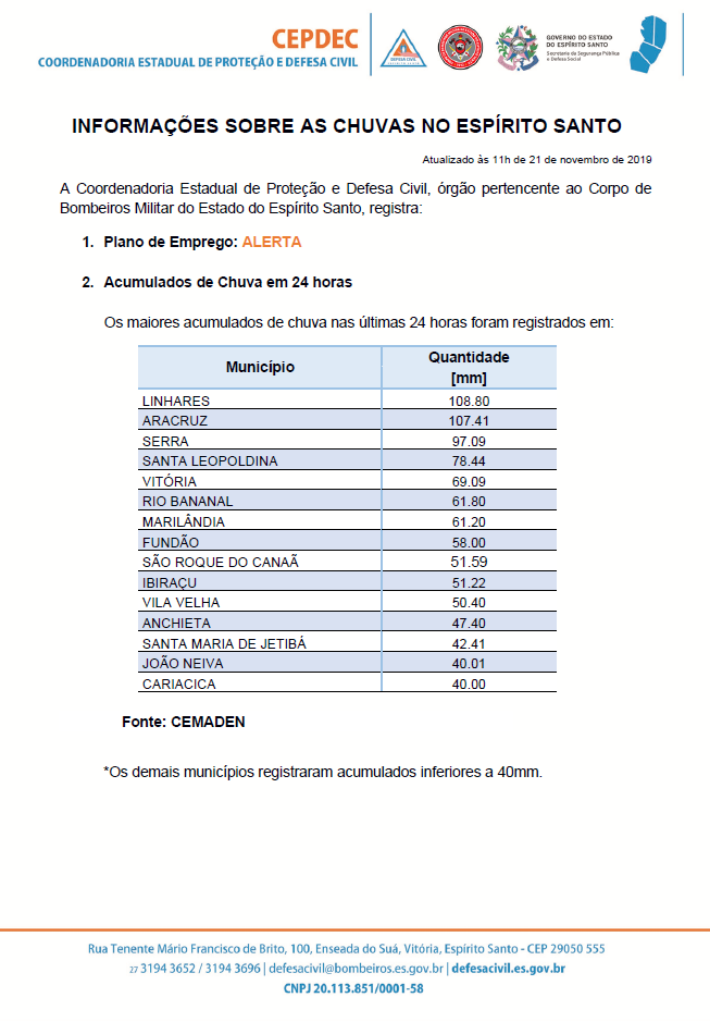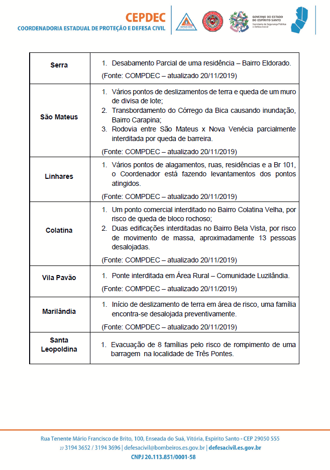 ATUALIZAÇÃO #ChuvasNoES 🌧