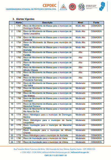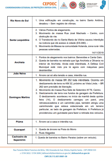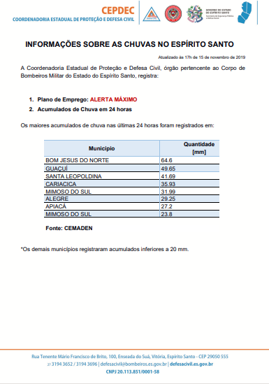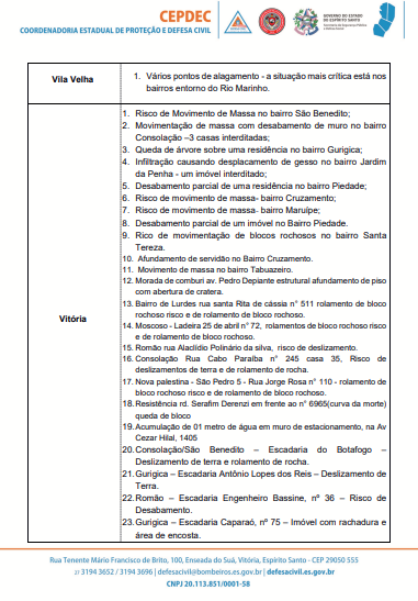ATUALIZAÇÃO #ChuvasNoES 🌧