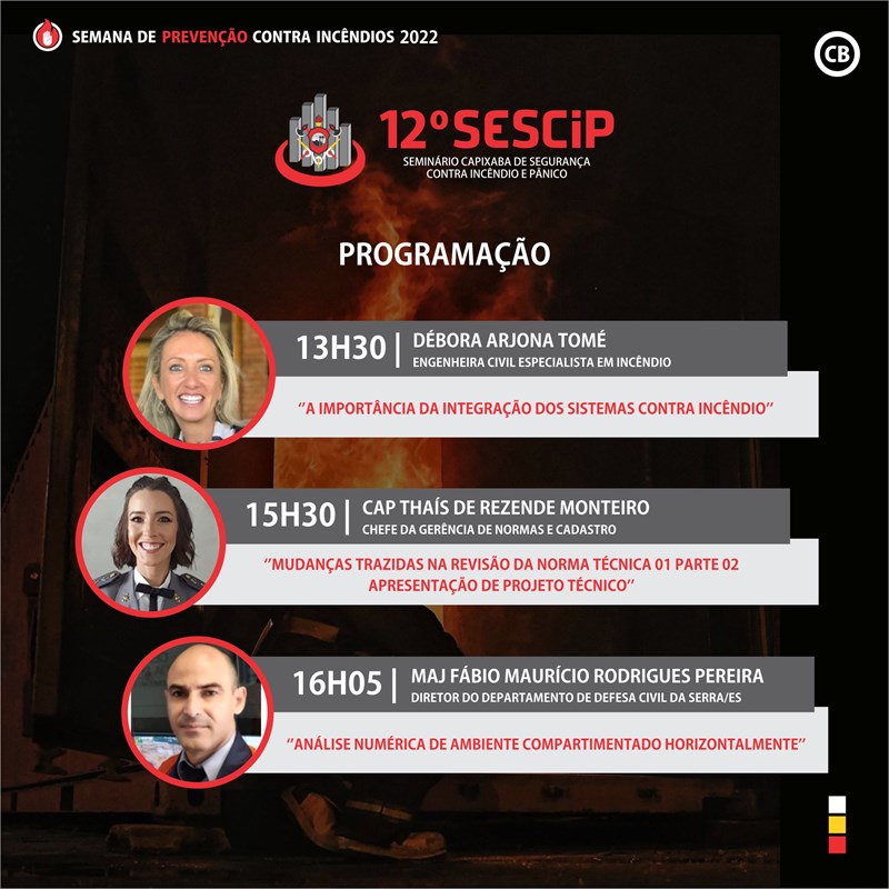 Na próxima segunda-feira (27), será realizado no Auditório do Centro de Atividades Técnicas, o 12º SESCIP - Seminário Capixaba de Segurança Contra Incêndio e Pânico.